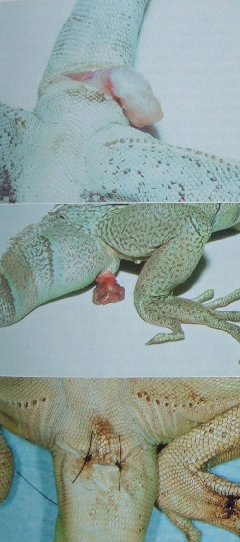 Technika přirozeného zlomení ocasu u leguánů zelených. Mader/Reptile Medicine and Surgery 2006: pozn.: tuto metodu musí vždy provádět pouze specializovaný veterinář !